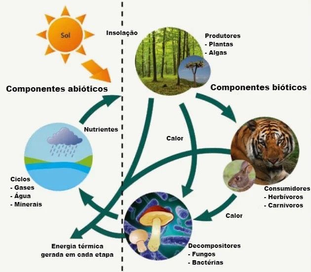 Las interacciones y procesos abióticos-bióticos que ocurren entre los dos subsistemas constituyen